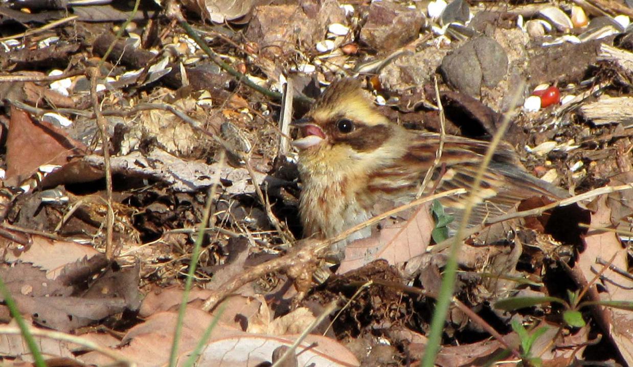 来ている小鳥たちは、ミヤマホオジロが4~6羽、それとキジバトも来ているみたいです。今日はアオジも近くで見たので、エサを食べているかもしれません。