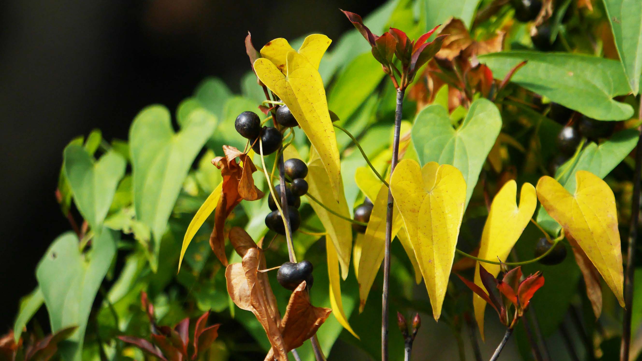 ヤマイモ(自然薯)の黄葉とムカゴ