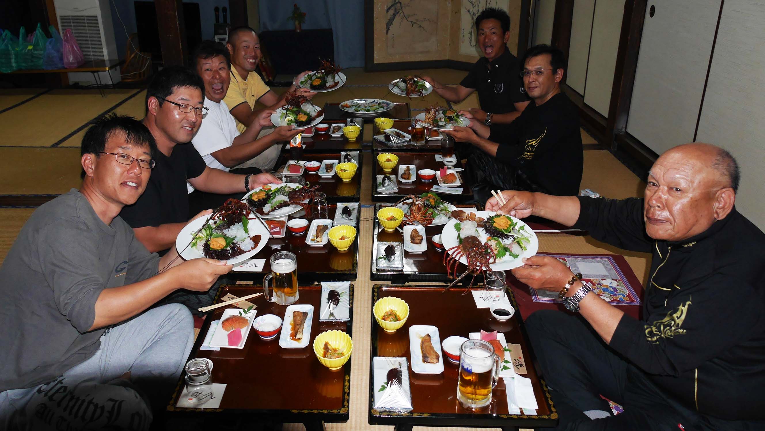 二日目は8人で宿泊、最初の膳に一匹ずつのイセエビ