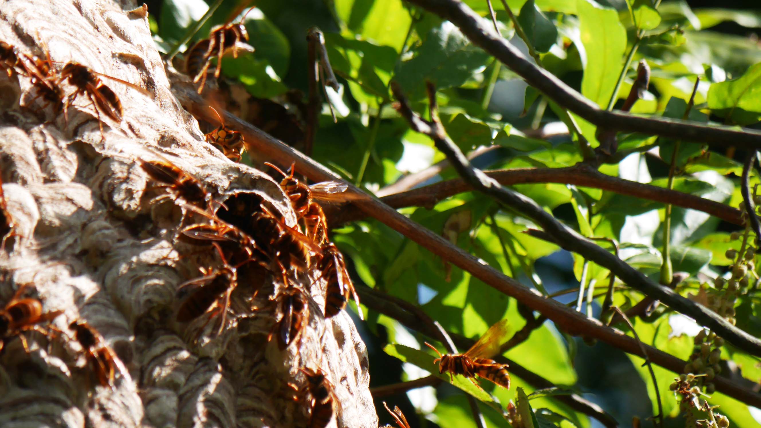 なにやらキイロスズメバチが2~3匹飛び回っていました。