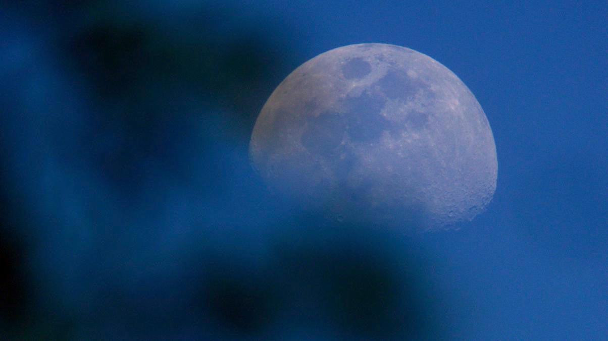 絵と文章は関係なし。満月前の月で、手前は桜の木。