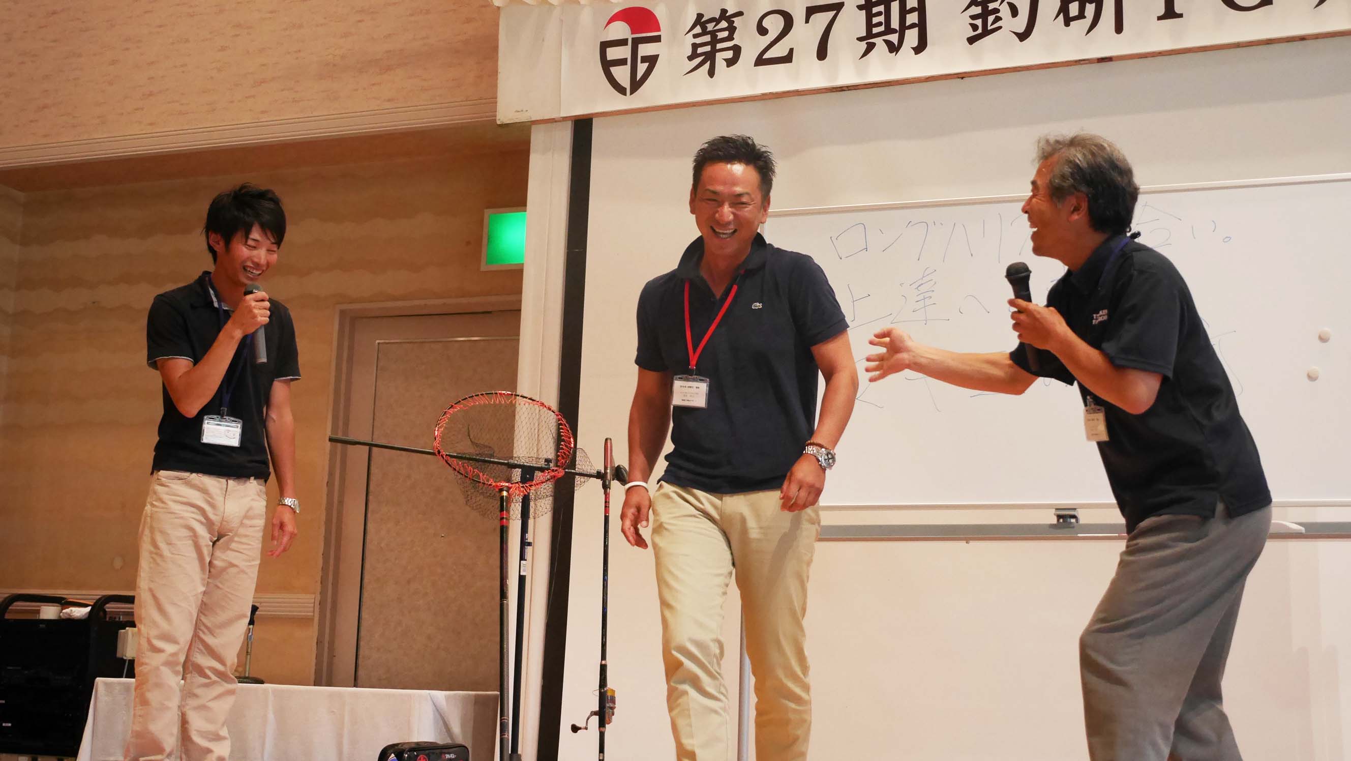 三つ目の夢は、不可能と想っていた事で、猪熊君と木村君と私の3人で講演会の壇上に立つことでした。その想いを叶えるべく、木村君とのコンビが決まった後に打ち合わせを行い、講演でのテーマにタモ上げの実演を組みました。この時に猪熊君を壇上へ招き、3人が壇上に揃っての実演を取り入れて、夢の講演を実現することが出来たのです。