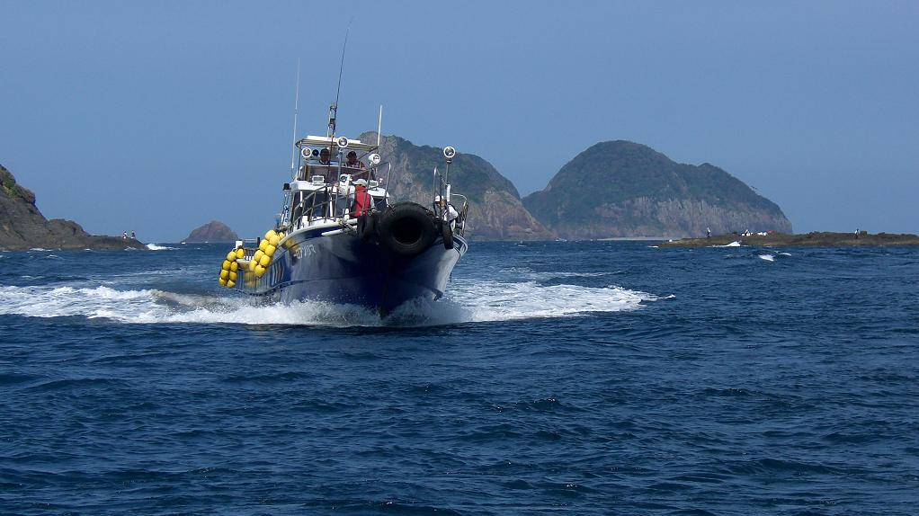 瀬渡し船に乗ったら見ることの出来るもの、海・空・岩・緑・鳥・時々イルカ・トビウオ、極めつけはクジラなど・・・いいじゃろ~?