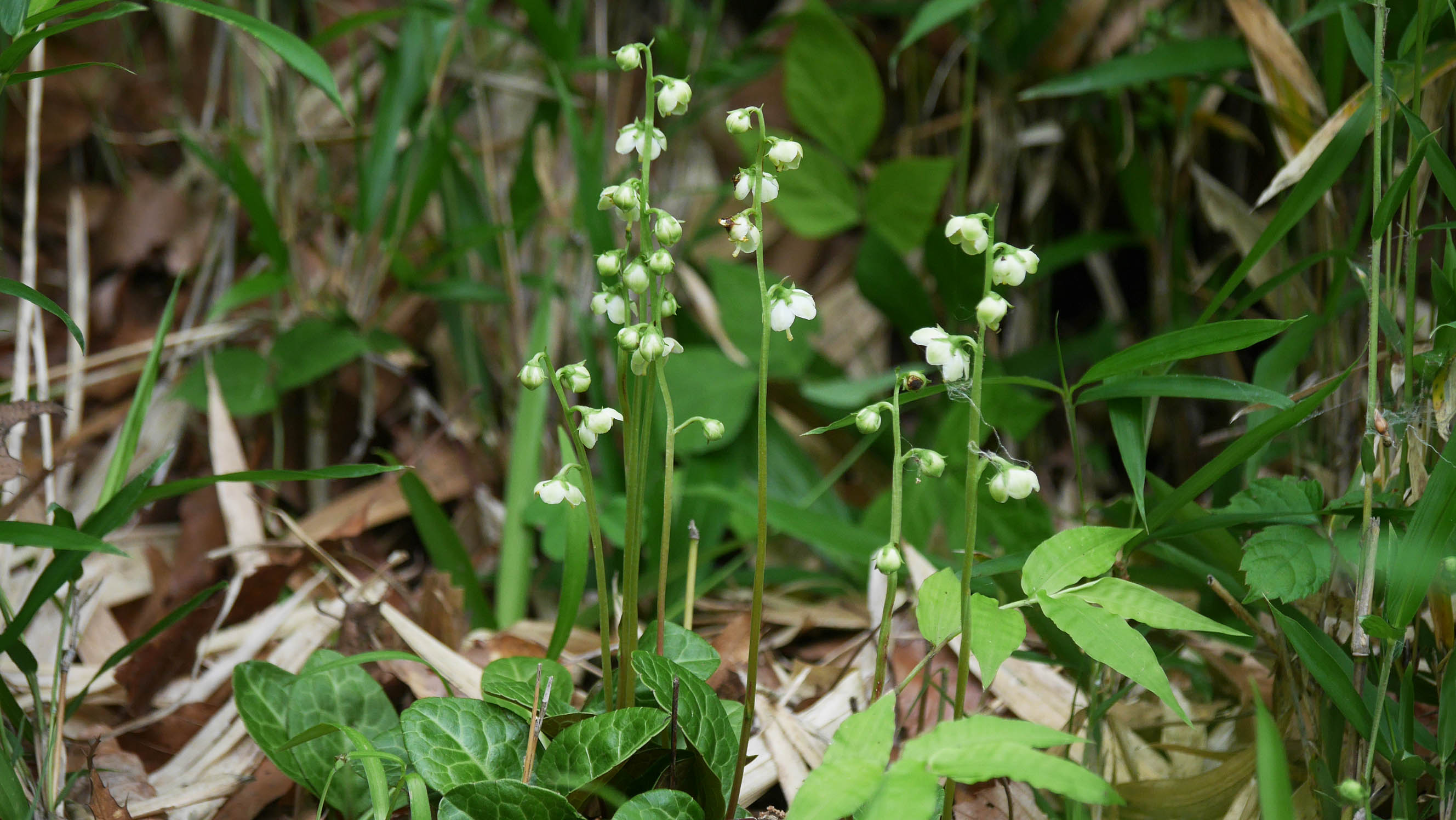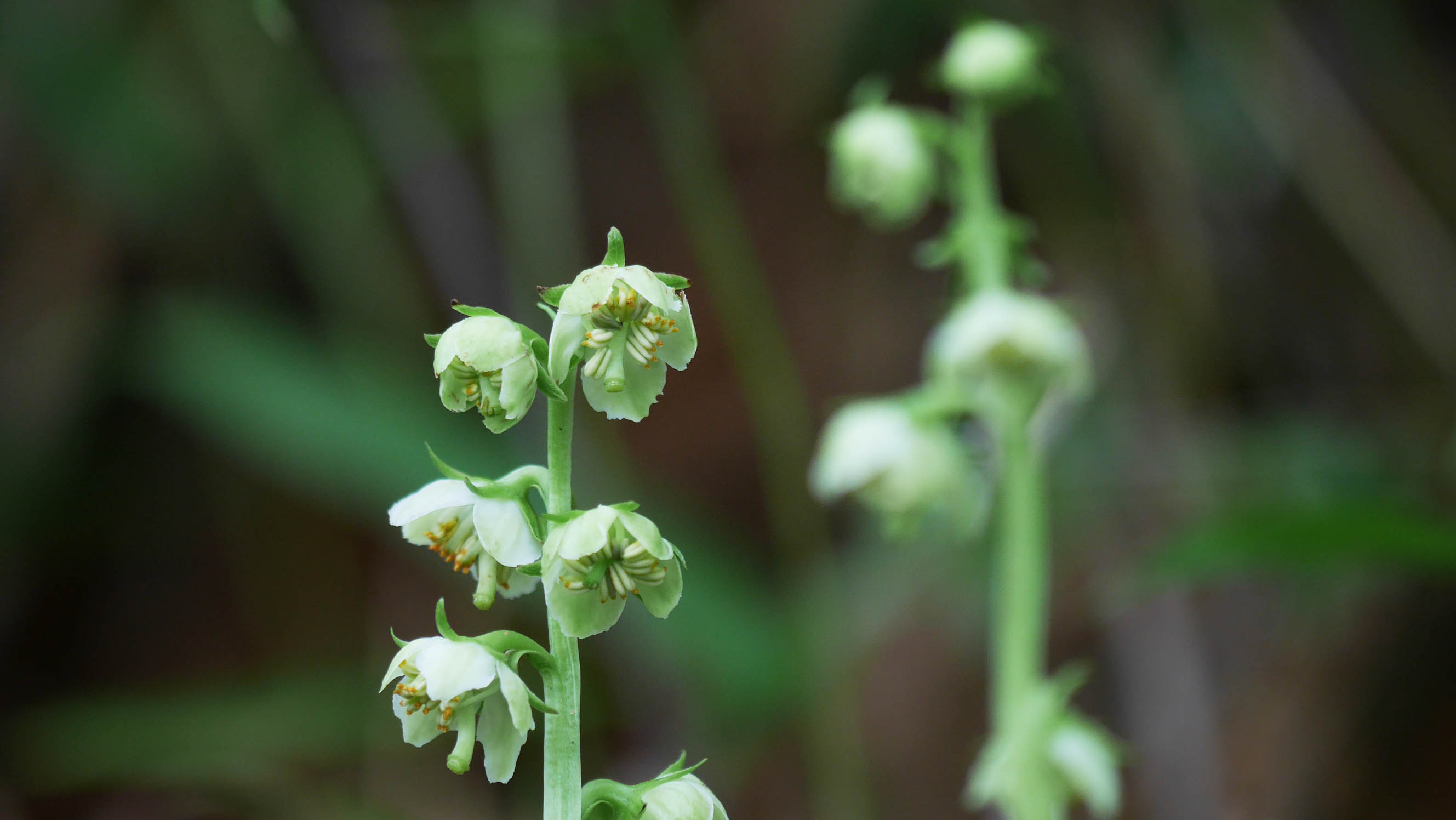 ヤイロチョウを撮影していた、尾根伝いの杣道にイチヤクソウが点在。