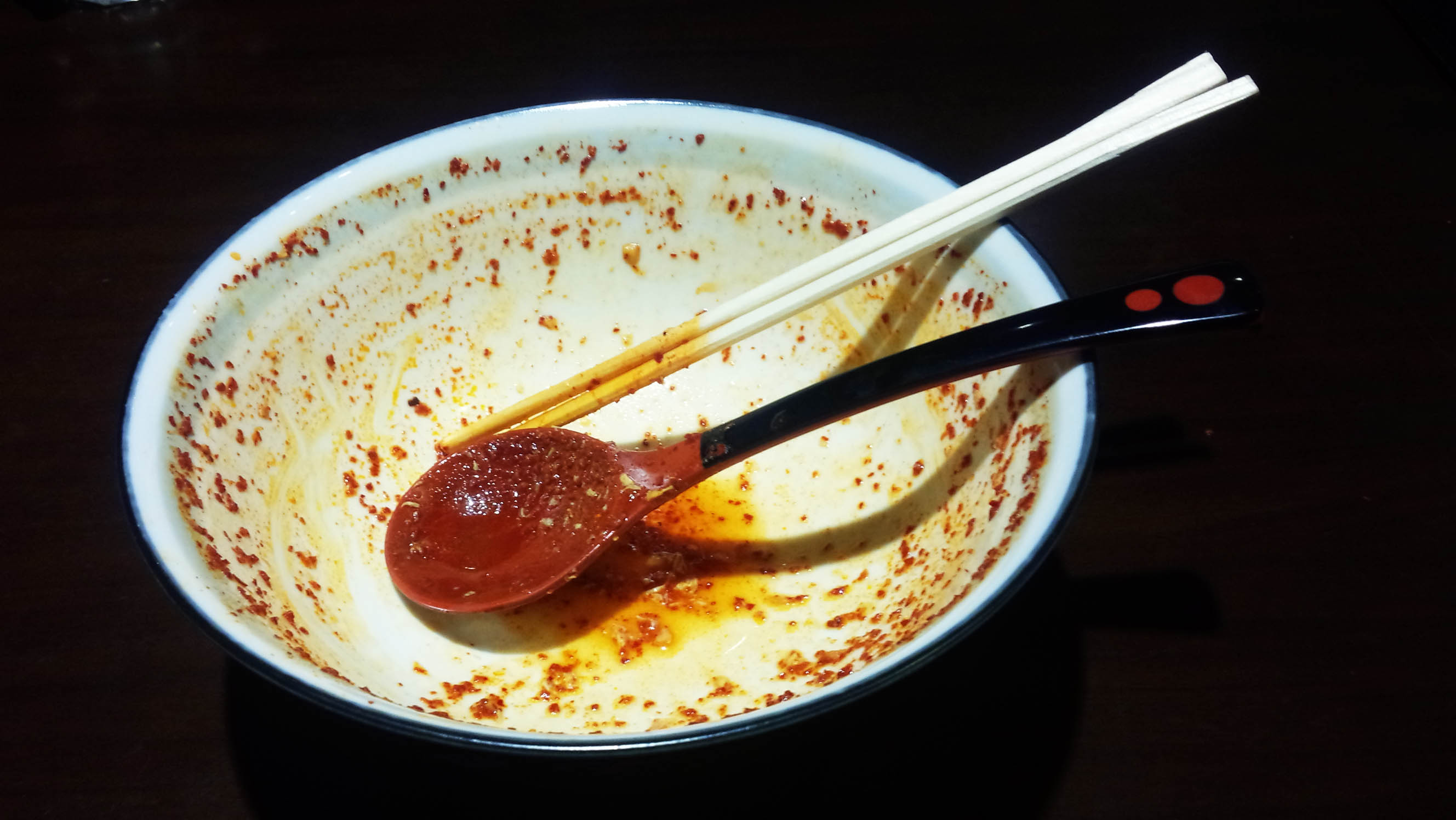 スープを2~3杯飲んでみると美味しい・・・旨味が濃くてなるほど辛い。