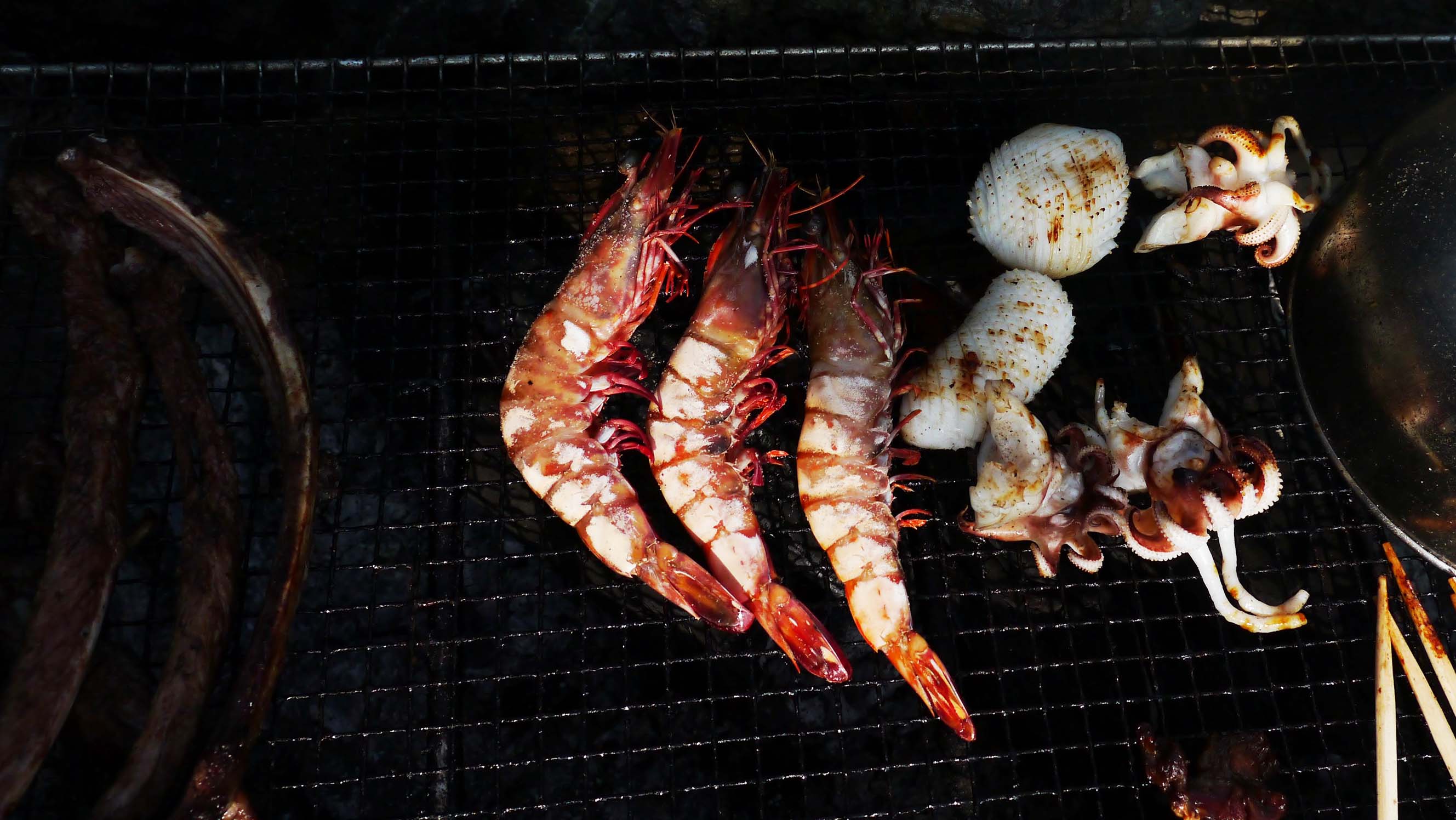 猪のスペアリブ・タレ漬け猪肉・イカ・エビなど