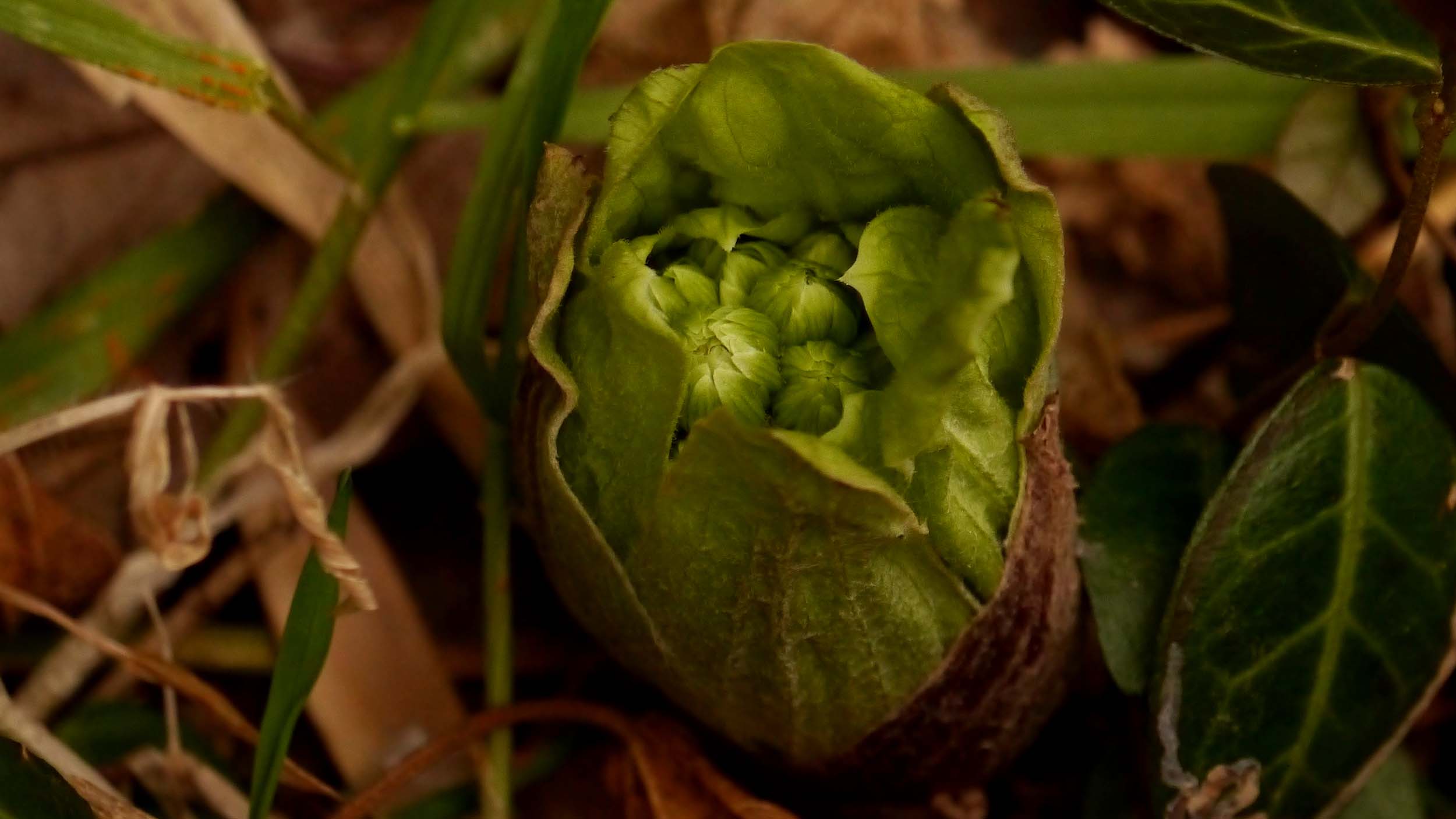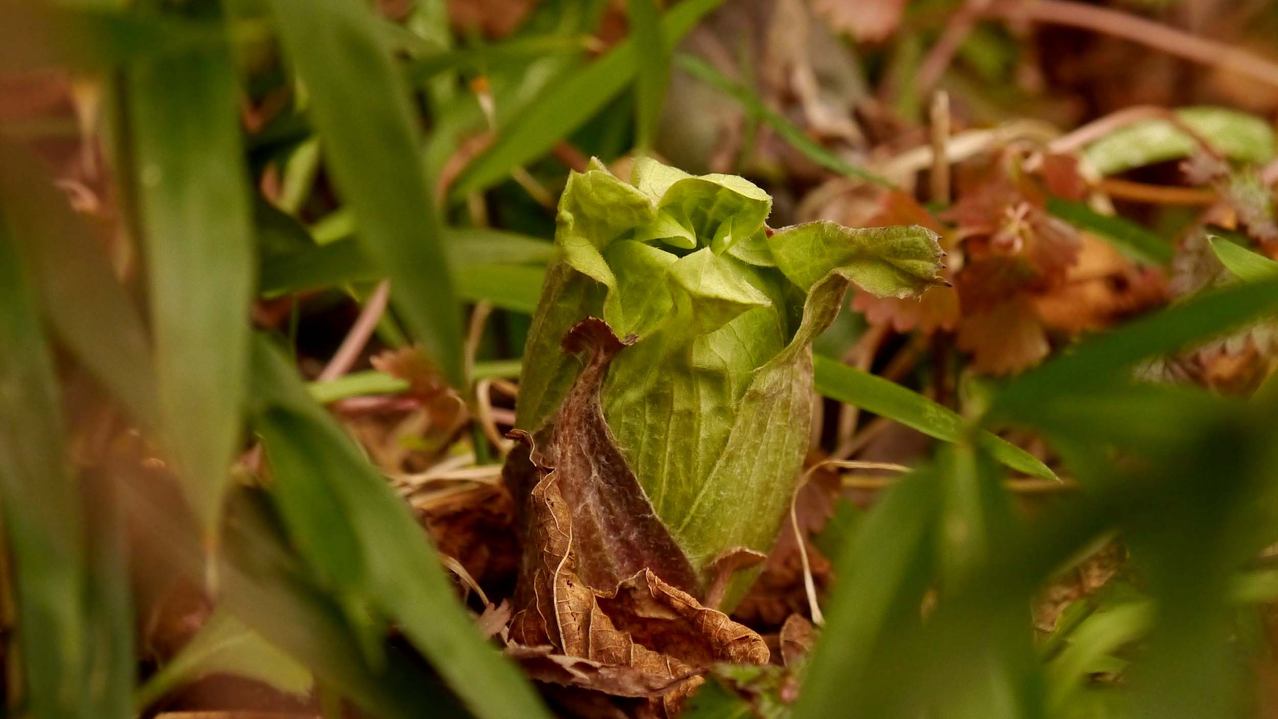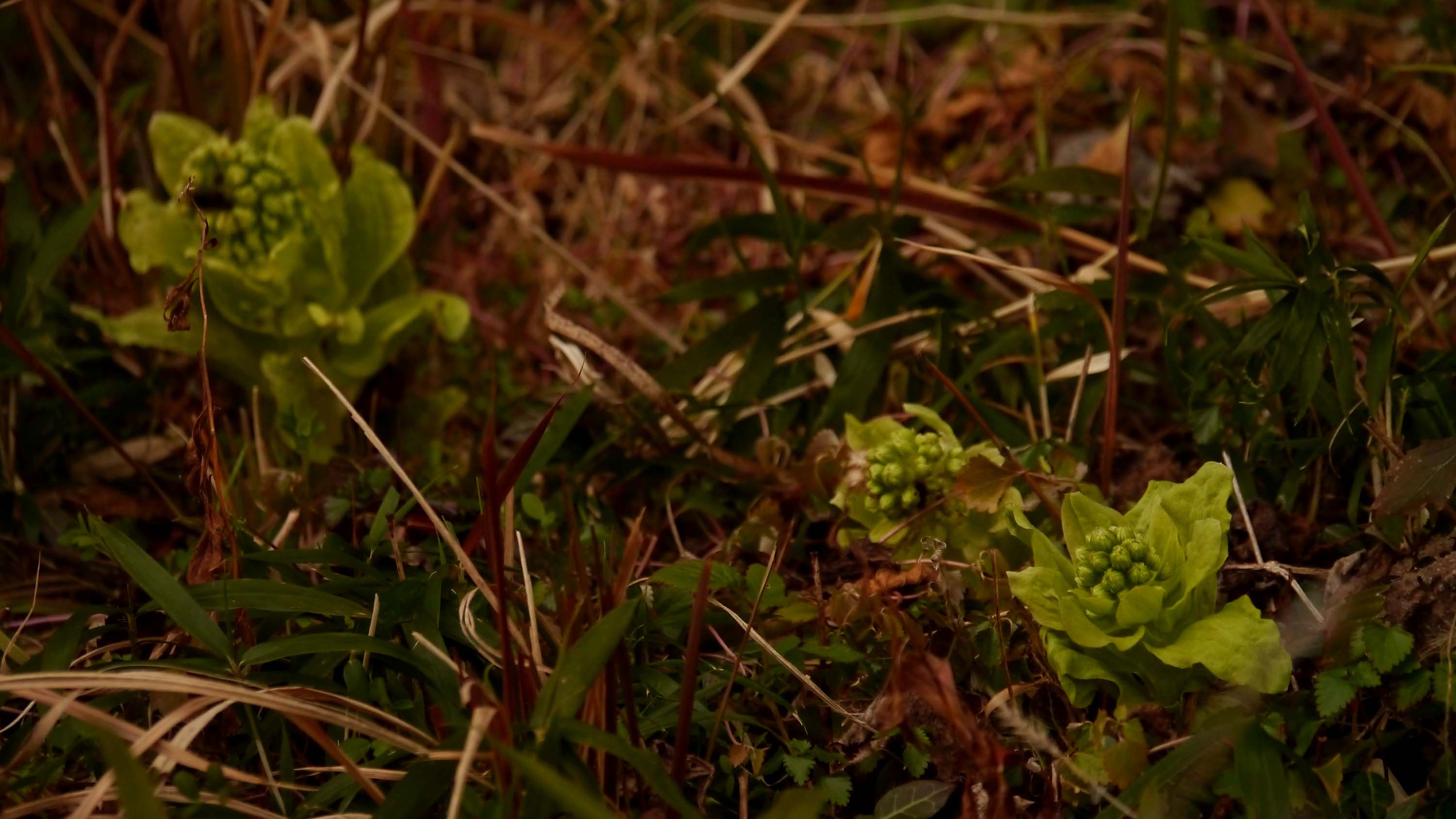 今日見に行くと4本のふきのとうが出ていました。