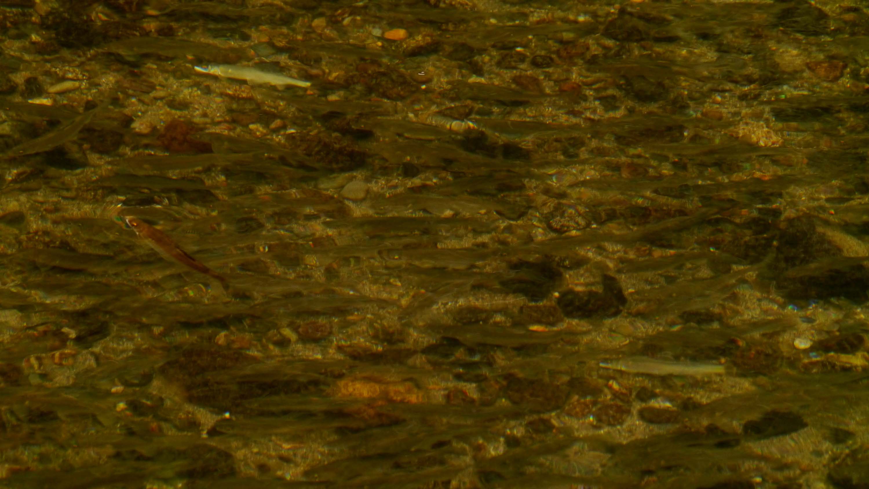 潜ってアユを追っていますが、ことごとく逃げられていました