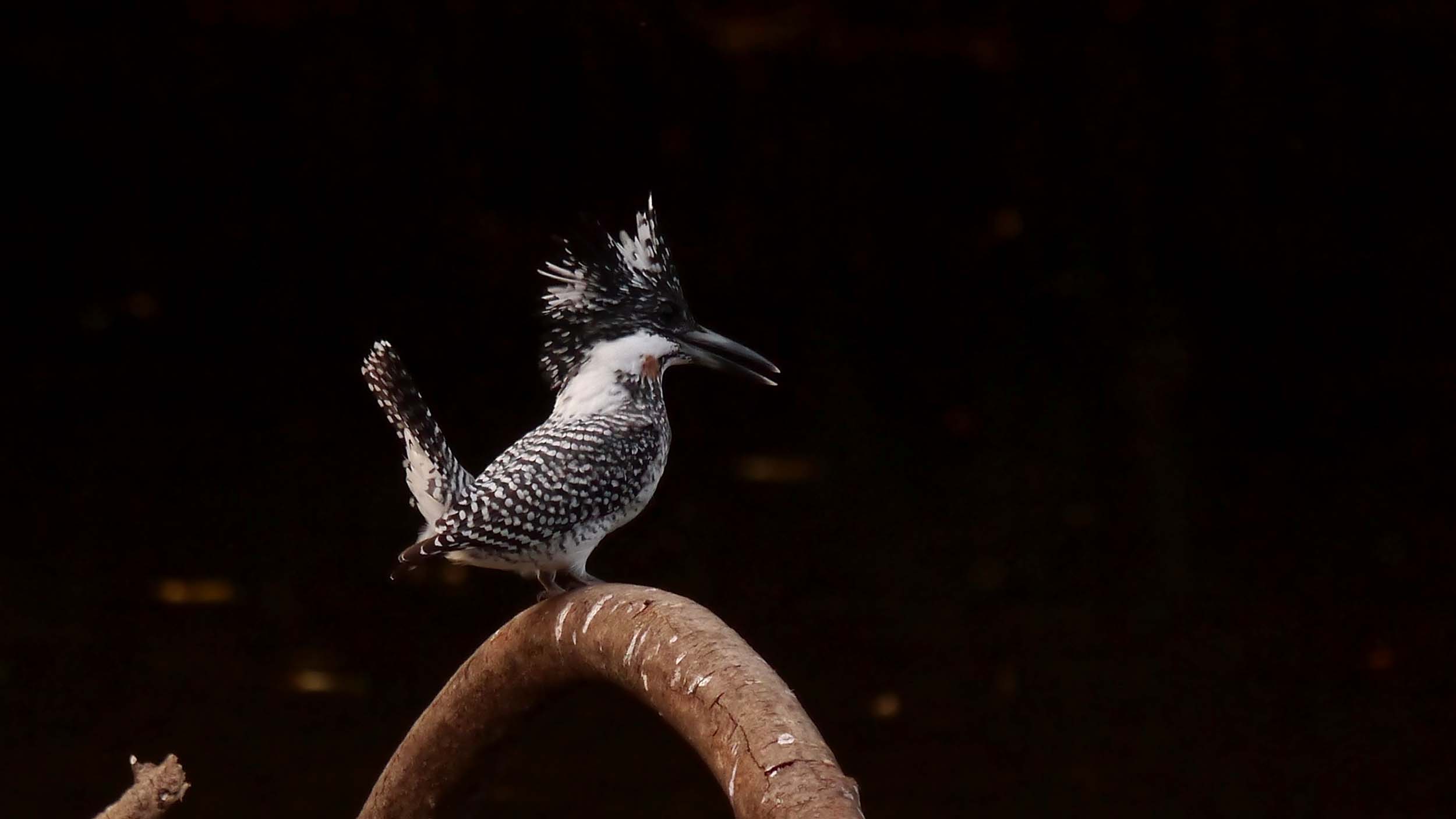ヤマセミは、白黒の鹿の子模様と冠羽が特徴。キジバトより少し大きく、清流~渓流にかけて住んでいます。20㎝前後の魚が大好物で、アユやヤマメを咥えた写真は絵になります。警戒心が非常に強いので見つける事が困難。